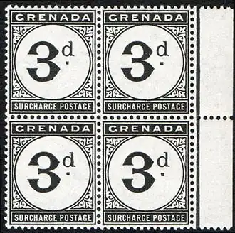 Доплатные марки Гренады выпускались с 1892 года[3]. По сведениям Л. Л. Лепешинского[6], до 1963 года было выпущено 18 доплатных марок, на которых может присутствовать надпись «Postage due» («Почтовая доплата»).