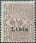 В 1924—1934 годах Триполитания и Киренаика выпускали собственные почтовые марки до их объединения в 1934 году, вместе с Феццаном, в итальянскую колонию Ливия. После этого в почтовом обращении находились итальянские колониальные выпуски Ливии — вплоть до её захвата британской армией во время Второй мировой войны, то есть до 1943 года[2][11].