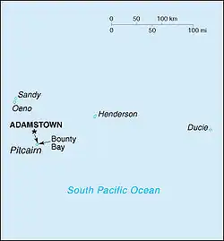 - ↑ См. Pitcairn sexual assault trial of 2004 и Law enforcement in the Pitcairn Islands.