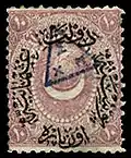Османская почта с 1868 года использовала в отделении на Святой Горе Афон стандартные марки своих общеимперских выпусков[20], причём в 1873—1882 годах с надпечаткой небольшого равностороннего треугольника с тремя инициалами имени начальника почтового отделения по углам — Χ/Σ/Π (Хаджи Сотирис Петропулос, греч. Χατζη Σωτήρης Πετρόπουλος)[27]. Каталог «Скотт» упоминает о надпечатке, но отдельных номеров таким маркам не присваивает[21].