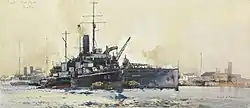 Серия появилась по инициативе нескольких морских офицеров экипажей кораблей Королевского ВМФ во главе с Гарри Пири-Гордоном (англ. Harry Pirie-Gordon) и производилась на их средства. Она состояла из шести номиналов в трёх валютах, номинал указывался по углам марки — в двух нижних в британских пенсах или шиллингах, слева вверху в российских копейках, справа вверху в греческих лептах[36]: