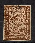 Известны шесть конвенционных княжеств: Чамба,[5] Фаридкот,[6] Гвалиор,[7] Джинд,[8] Набха[9] и Патиала.[10] Все они использовали почтовые марки Британской Индии, на которых была надпечатка названия княжества латиницей или письмом хинди/урду или обоими алфавитами.[11] В каталоге Гиббонса отсутствуют незначительные разновидности этих марок, которые имели ошибки печати, такие как буквы меньшего размера, рваные буквы, неравномерное нанесение краски и неравные интервалы.[11] Конвенционные выпуски были заменены выпусками Республики Индии 1 апреля 1950 года, но оставались в обращении до 31 декабря того же года и вышли из обращения с 1 января 1951 года.[11]