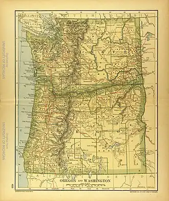 В 1848 году была создана территория Орегон, включающая современные штаты Вашингтон, Орегон и Айдахо, а также части штатов Монтана и Вайоминг. Территория Вашингтон, включавшая Вашингтон и части Айдахо и Монтаны, была образована из территории Орегон в 1853 году. В 1872 году арбитражный процесс разрешил пограничный спор, возникший в результате Свиной войны, и установил границу между США и Канадой через острова Сан-Хуан и острова Персидского залива.