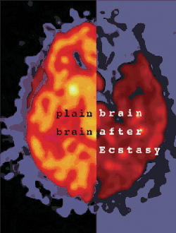 Одной из этих неоднозначных кампаний была образовательная программа конца 1990-х — начала 2000-х о вреде экстази, продвигавшаяся одно время Национальным институтом по проблемам злоупотребления наркотиками США (англ. National Institute on Drug Abuse, NIDA), «Plain Brain/Brain After Ecstasy» («Чистый мозг/Мозг после экстази»). Программа оперировала изображением, разделённым на две части, взятые из работы Макканн с соавторами в журнале Lancet в 1998 году[118]. Левая часть показывала «мозг нормального человека», а правая — «мозг после воздействия экстази» в отношении концентрации серотонина. Это изображение печаталось на карточках, распространявшихся сотнями тысяч в барах и ресторанах в США, а также использовалось в телевизионной кампании и на сайтах. После жёсткой критики, заключавшейся в том, что исходное исследование имело серьёзные методологические проблемы (выбор контрольной группы, не подвергавшейся воздействию экстази, был очень неудачным: размах концентраций серотонина в ней был настолько большим — 35-кратным, что авторам работы пришлось применить логарифмическую шкалу для представления результатов, а некоторые её члены имели 50-кратное превышение уровня серотонина над средней нормой), что вместо средних представителей обеих групп были выбраны самые крайние (что является вводящим в заблуждение использованием индивидуальной вариабельности для порождения драматического эффекта), что корреляция, выявленная в исходном исследовании, была подменена причинно-следственной связью и что на частях изображения для создания более сильного визуального эффекта даже не совпадали шкалы последовательностей цветов, кампания была свёрнута, оставив, тем не менее, отпечаток на общественном мнении о проблеме[90][116][119].