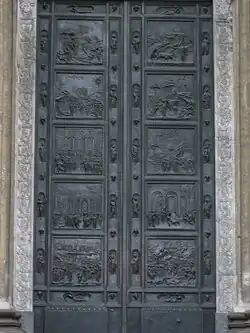 Начало настоящего Возрождения в живописи во Флоренции датируется первым годом XV века. Это время известно в Италии как Кватроченто — синоним раннего Возрождения. В это время в Италии был проведён конкурс на создание бронзовых дверей для Баптистерия Св. Иоанна, самой старой из сохранившихся церквей во Флоренции. Баптистерий (в переводе с греческого означает «место для погружения») — помещение в церкви или отдельно стоящее здание, предназначенное для совершения таинства Крещения. Баптистерии строили в виде круглых или восьмиугольных зданий, богато украшенных мозаикой. Купели в древних баптистериях изготавливались из мрамора и других ценных пород камня. Внутренняя часть купола баптистерия во Флоренции была украшена огромной мозаичной фигурой Христа, как полагают, работы Коппо ди Марковальдо. Баптистерий имеет три больших части с входными воротами. Южные ворота были созданы Андреа Пизано.