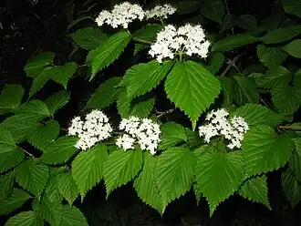 Калина Райта — деревце или куст до 3 метров высотой. Побеги торчащие вверх, тонкие, с серовато-бурой корой, почти голые или с редкими волосками.