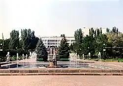 аллея фонтанов и ДК Металлургов в парке им. Гурова
