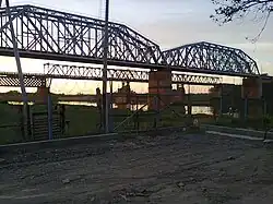 2 февраля 1943 года — Существующая западная часть автомобильного моста опирается на частично разрушенные пирсы, железнодорожный мост полностью разрушен.