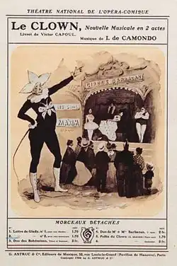 Одним из увлечений Камондо была музыка — он сам сочинял арии и инструментальные пьесы. Его самая известная работа — опера «Клоун» на либретто Жозефа-Амеде-Виктора Капуля, премьера которой состоялась в 1906 году с участием американского сопрано Джеральдины Фаррар.