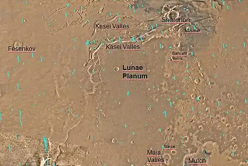 - ↑ Mark S. Robinson, Kenneth L. Tanaka. Magnitude of a catastrophic flood event at Kasei Valles, Mars : [англ.] // Geology. — 1990. — Т. 18, № 9 (September). — С. 902—905. — doi:10.1130/0091-7613(1990)018<0902:MOACFE>2.3.CO;2.