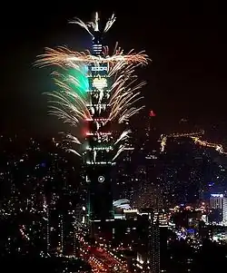 В Тайване конец года отмечается с концертами в таких городах, как: Таоюань, Тайчжун, Тайбэй и Гаосюн. В последнее время нация использует технологию для общения между городами посредством видео, что позволяет городам быть вместе. Самый переполненный город — Тайбэй, где большинство людей съезжаются в Тайбэй 101. С каждым числом, которое они подсчитывают, один из слоёв Тайбэя 101 (восемь этажей на слой) загорается до полуночи, когда фейерверки выходят из верхней части каждого слоя (восемь слоёв, исключая слой под антенной) в разных направлениях.