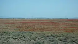 Климат резко континентальный: летом жара до +57 градусов Цельсия, зимой до −40 градусов Цельсия. Осенью дуют холодные ветра. Весной преимущественно солнечно, ветры дуют временами. В начале марта расцветают подснежники. В конце апреля до середины мая ландшафт преображается. Здесь растет много красных (каз.кызгалдак) и желтых (каз.саргалдак) тюльпанов. У туристов есть шанс увидеть и запечатлеть «цветение тюльпана». По исследованиям голландских ученых голландские тюльпаны были привезены из Центральной Азии, точнее из территории нынешнего Казахстана.