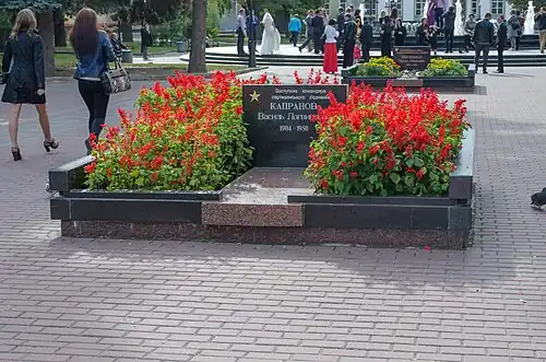 Был похоронен в сквере имени Попудренко в центральной части города Чернигова. В июле 2017 года перезахоронен на Черниговском городском кладбище.