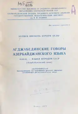 - Кулиев И. К. Агджабединские говоры азербайджанского языка. Канд. дисс. — Баку, 1977. — 33 с.