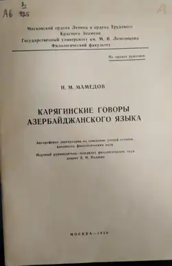 - Мамедов И. М. Карягинские говоры азербайджанского языка. Канд. дисс. — М., 1958. — 42 с.