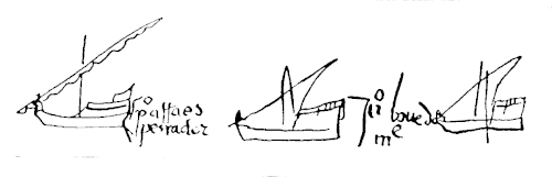 Самое раннее известное нам изображение португальской каравеллы датируется 5 декабря 1488: судовладелец João de Lião составил заказ на обеспечение его судна провиантом и оставил подпись с изображением его каравеллы. Подобные изображения, присутствуют среди имён испанских рыбаков, в документах, датированных началом XVI века. Все изображённые каравеллы одномачтовые.