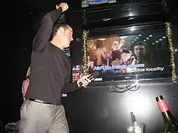 Карао́ке (сложное слово, образованное слиянием двух слов яп. 空 [から] кара — пустота и англ. orchestra — оркестр; на японском:オーケストラ — ōkesutora, дословно «пустой оркестр») — развлечение, заключающееся в непрофессиональном пении с использованием электронного устройства или без него, позволяющего петь под заранее записанную музыку (фонограмму или плюс); также само это устройство.