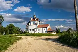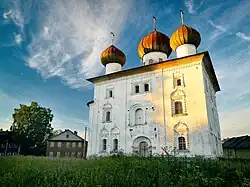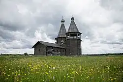 Многоглавый деревянный храм XVIII века с многоглавым завершением. Сохранилось расписное «небо»[7].