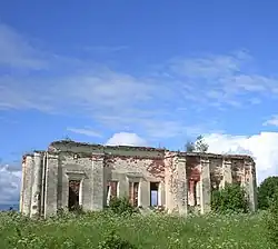 Разрушенная церковь Тихвинской Богоматери «на Кобылиной горе» в деревне Карл Либкнехт — памятник архитектуры[4].