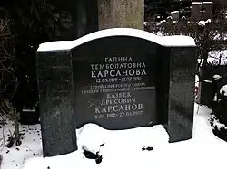 Казбек Дрисович Карсанов умер 27 марта 1997 года в Москве. Похоронен на Троекуровском кладбище (участок 2).
