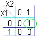 - Одна ячейка карты Карно может входить сразу в несколько областей. Это следует из очевидного свойства булевых функций: повторение уже существующего слагаемого (сомножителя) не влияет на функцию: