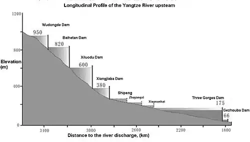 Крупнейшим в мире по мощности проектируемым каскадом является Каскад ГЭС на Янцзы — общей мощностью более 64 ГВт, включает в себя ГЭС Три ущелья.[1]