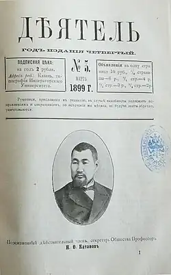 Обложка журнала «Деятель» (№ 3 за март 1899 года) с фотопортретом Н. Ф. Катанова