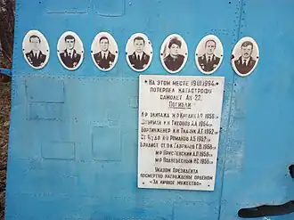 ![]() Памятная стела на месте катастрофы у деревни Антоново Калининского района Тверской области | |