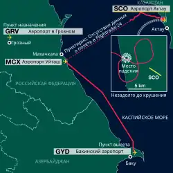 - ↑ Azerbaijan Airlines E190 crashes near Aktau
