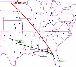Борт N47BA вылетел из Орландо в 09:19 EDT, на его борту находились 2 пилота и 4 пассажира. В 09:27 авиадиспетчер УВД Джэксонвилла дал пилотам указание набрать эшелон FL390 (11 900 метров) и пилоты подтвердили набор высоты; это было последнее радиосообщение с борта N47BA (в этот момент самолёт находился на высоте 7000 метров).