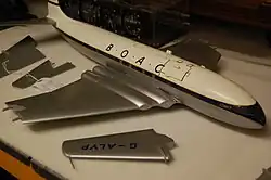 Для подобных тестов в Фарнборо совместно с «de Havilland» и Министерством регистрации воздушных судов был сооружён бак, в который поместили самолёт G-ALYU (Yoke Uncle, совершил первый полёт 23 июня). Обе плоскости крыла при этом оставались снаружи, при этом создавалась возможность создавать циклическую нагрузку в консолях крыла за счёт их изгиба при наполнении фюзеляжа водой. Такие источники вибрации, как колебания груза, турбулентность, вибрация от двигателей и влияние спутной струи в данном случае воссоздать не представлялось возможным. Тесты проводились периодическим созданием внутри фюзеляжа избыточного давления 1,3 атм[уточнить] (131722,5 Па) с промежутками примерно в 1000 «полётов»[11].