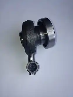 Вал имеет проточку, выполняющую функцию внутреннего кольца подшипника. Плоскость, в которой расположена эта проточка, находится под углом к оси вала[1]. Наружное кольцо подшипника имеет рычаг, расположенный в плоскости подшипника на прямой, проходящей через центр вращения и точку крепления рычага к наружному кольцу подшипника. Рычаг может совершать движения только в плоскости, проходящей через ось вала, так как свободный конец рычага заведён в приводимую втулку, движение которой внутри определённого отрезка, параллельного оси вала, обеспечивается тем или иным способом другими элементами конструкции.