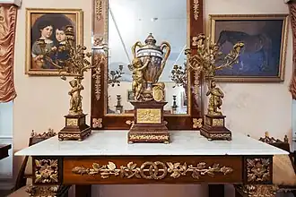 Музей имеет большую коллекцию фарфора. Севрский фарфор соседствует с Мейсенскими изделиями отечественных заводов Кузнецова, Гарднера, Корниловых, Поповых. Здесь можно увидеть уникальные декоративные колонны и столешницу, на фарфоровых медальонах которых французскими художниками Давидом и Гийоном написаны сюжеты, посвящённые Наполеону[2].