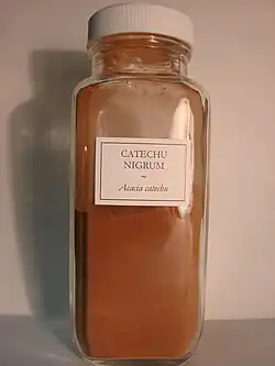 Кашу (Cachou, Catechu) — также катеху и гамбир, представляет собой выпаренный досуха сок некоторых акаций, пальм и других растений вроде Acacia catechu, Areca catechu (откуда и название), Uncaria gambir, Butea frondosa и др., растущих преимущественно в Ост-Индии и на Ост-Индских островах. Используется в пищевой и текстильной промышленности.