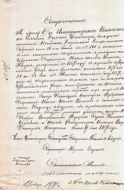 Диплом II степени, выданный А.П.Каютову по окончании обучения на Юридическом факультете Императорского Московского Университета в 1891 году (ЦГА Москвы. ф.418 оп.300 е.х.338)