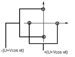 Квадруполь представляет собой четыре параллельно и симметрично расположенных монополя (электроды круглого сечения). К электродам попарно в противоположной полярности подаётся определённая комбинация постоянного и высокочастотного напряжения ( , где - напряжение постоянного тока, — радиочастотная компонента).