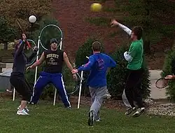 | Ворота/кольца | Гандбольные ворота (Центральный регион) или три кольца (Урал), центральное висит выше или ниже крайних | Три кольца, находящиеся на высоте 1, 1.4 и 2 метра соответственно, между держащими столбиками 2.34 метра |