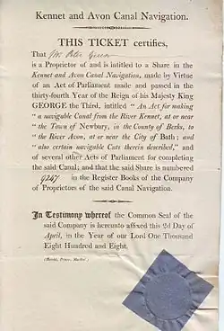 17 апреля 1794 года проект канала Кеннет — Эйвон получил королевское одобрение, строительство началось. Открытие канала произошло в 1810 году, после 16-ти лет строительства[5].
