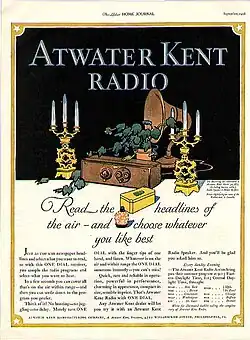 - ↑ Williams, Ralph, and John P. Wolkonowicz. A. Atwater Kent : the Man, the Manufacturer, and His Radios. Philadelphia: Sonoran Pub, 2002. Print.