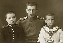 В 1913 году, после года учёбы в немецкой гимназии Карла Мая, поступил в Первый кадетский корпус. В 1917 году перевелся в Морской кадетский корпус. После Октябрьской революции в связи с расформированием в марте 1918 года Морского корпуса был вынужден прервать образование. Вскоре с матерью и младшим братом (отец в это время находился в Лондоне, а старший брат на фронте) был изгнан революционными матросами из квартиры на 10-й линии Васильевского острова и перебрался в Лугу, где семья поселилась поблизости от проживавших там сестры и брата матери — отставного вице-адмирала М. Ф. Шульца.