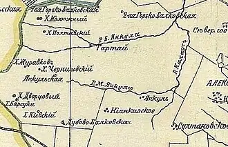 - ↑ Карта Ставропольской губернии, изданная по распоряжению ставропольского губернатора Б. М. Янушевича Ставропольской землеустроительной партией. Составил землемер Б. Харатов. Под наблюдением И. Л. Щеглова. Ставропольская типо-литография Тимофеева, 1909 г. Масштаб 20 вёрст в дюйме