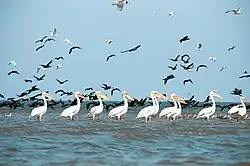 Самой многочисленной и самой важной как в природоохранном, так и экологическом плане, группой позвоночных животных района являются птицы. Зарегистрировано более 320 видов птиц, среди них встречаются редкие виды, как: большой и малый баклан, колпица, серая, рыжая, малая и большая белые цапли, кваква, крачки речная и пестроносая, розовый и кудрявый пеликаны, орлан-белохвост и другие.