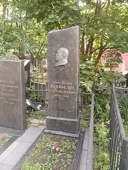 29 сентября 1965 года скоропостижно скончался. Похоронен на Армянском кладбище в Москве.