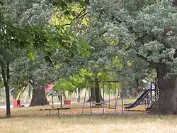 В части парка, прилегающей к улице Сошенко, старые деревья отсутствуют (хотя безусловно были здесь ранее, поскольку они есть на прилегающих усадьбах). Тут преобладают средневозрастные и молодые берёзы, тополя, клёны, есть группа более старых осин. Имеются также остатки старого сада.