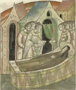 Смерть митрополита. Миниатюра из Лицевого летописного свода