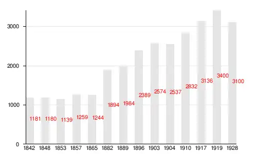 Изменение численности населения прихода Лииссиля с 1842 по 1928 год[6][7][8]: