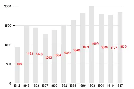 Изменение численности населения прихода Каприо с 1842 по 1917 год[5][6]: