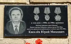 Мемориальная доска на доме где проживал Ю.М. Кисилёв, ул Дзержинского,13.1977-1980 гг., первый секретарь Ленинского райкома партии города Барнаула;
