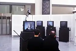 Интерактивность является самым естественным свойством всякого виртуального мира (равно как и интерфейса, разработанного для управления им), так как его функционирование невозможно без человеческой активности. Кажущееся зрителю очевидным, взаимодействие представляет собой сложную структуру. Подобный проект Нонни де ля Пенья и Пегги Вейлс «Пропавшие в Гуантанамо» (Lost in Guantanamo, 2002) описывала Кристина Пауль: «когда зрители попадают в тюрьму и теряют контроль над своими виртуальными телами, это производит на них сильное впечатление. Это лишает их главного свойства виртуального опыта: интерактивности и контроля над происходящим вокруг»[15]. Последнее полностью дезавуировалось Киселёвой, вновь напоминающей человеку о бессознательности его сегодняшней жизни. К сожалению, замысел «ДиДжи Кэбин» не был реализован полностью. Изначально предполагалось оборудовать целый компьютерный клуб, столь популярное среди молодежи место начала 2000-х, где индивидуальный опыт совмещался бы с коллективным, а идея о недопустимости человеческой войны проецировалась бы на онлайн-игру между всеми, кто находился бы в кабинах одномоментно.