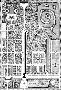 По замыслу Ринальди, ансамбль Собственной дачи должен состоять из двух частей — регулярной и пейзажной. В восточной регулярной части располагались основные парковые сооружения (Каменное зало, Китайский дворец, павильон Катальной горки). Большая западная часть была близка пейзажному «английскому» парку. При всем этом четкая граница между ними отсутствовала, одна часть как бы плавно переходила в другую[1].